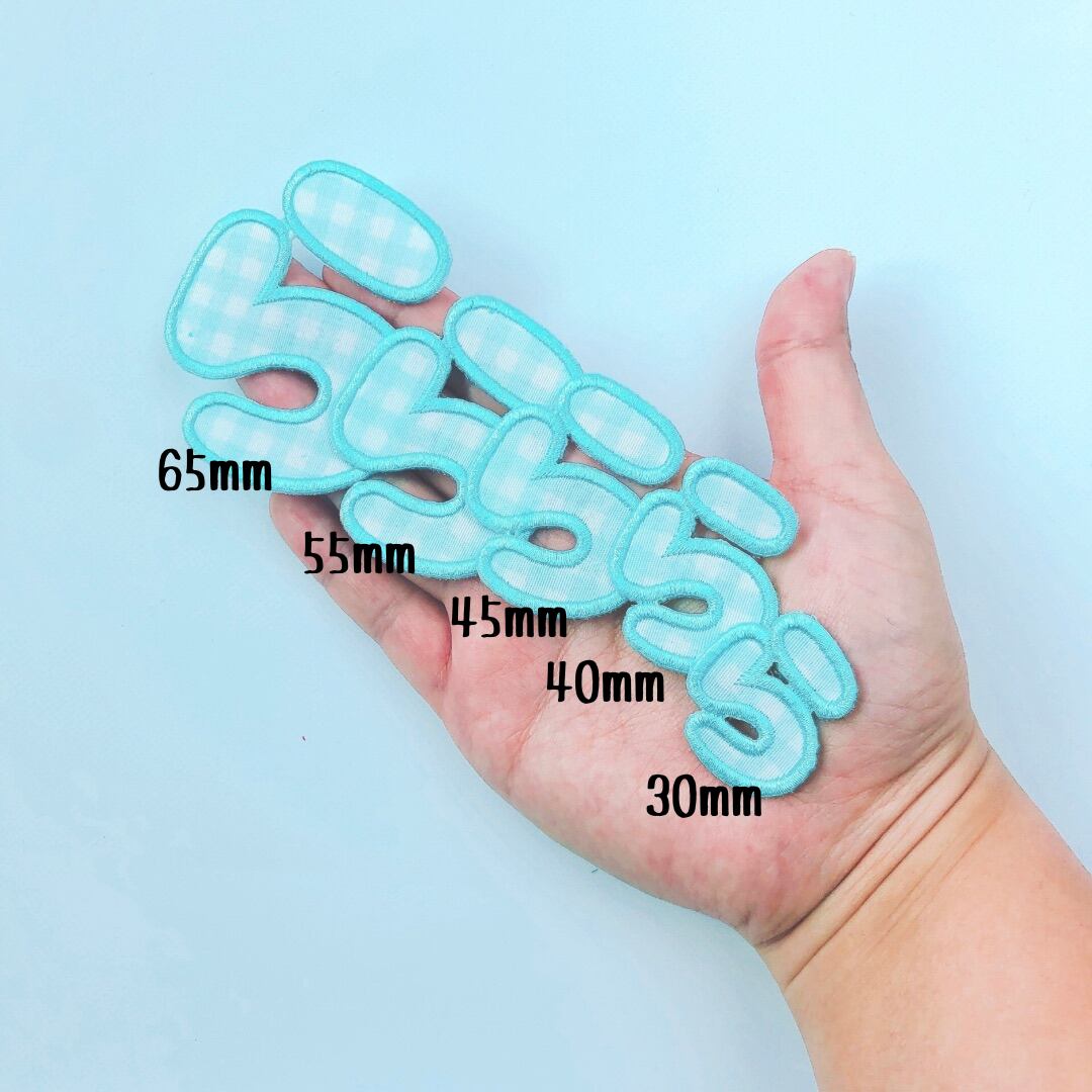 てむっとオリジナルのチェック生地を使ったひらがな一文字ワッペンです。