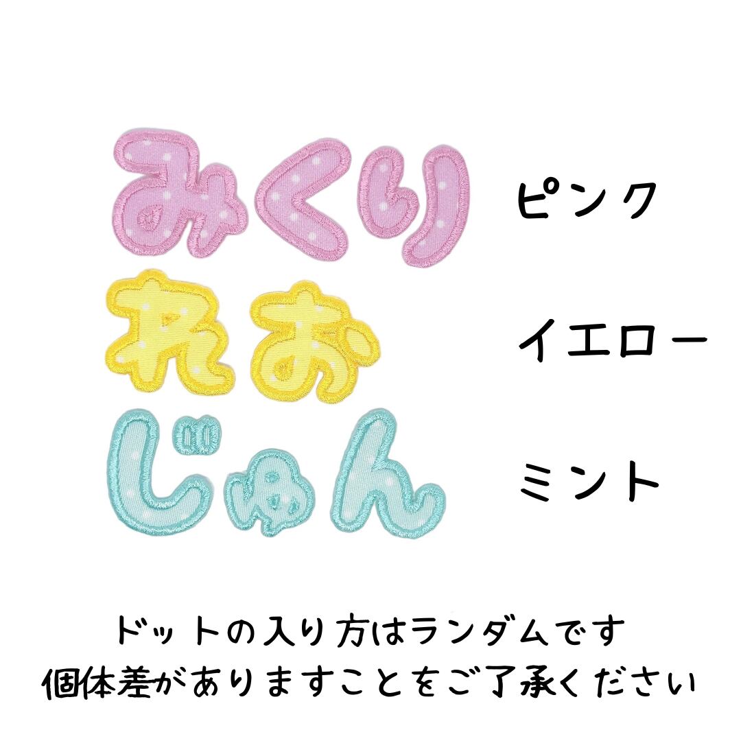 てむっとオリジナルのドット柄の生地を使ったひらがな一文字ワッペンです。
